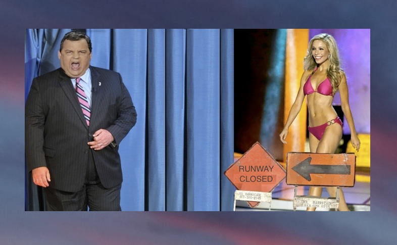 In a deliberate attempt to change the outcome of the Miss America pageant last night in Atlantic City, Governor Chris Christie personally placed misleading traffic signs on stage, in order to confuse the contestants and “put them off their game” thus allowing Miss New Jersey to step up and take the tiara! He had been hoping for New Jersey to be known as, the home of ‘Miss America’ and the next ‘Mr. President’. Much to Christie’s chagrin, all of the contestants, with the exception of Miss Arizona simply stepped around the signs and continued the stroll in their high heels and bathing suits.