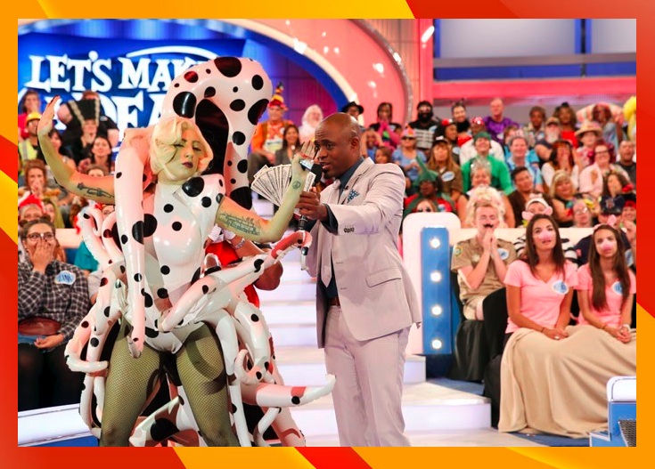 “Let Gaga think, monsters. Gaga must think,” pleaded Lady Gaga at the screaming audience behind her during her recent appearance on “Let’s Make A Deal,” while in Southern California on her “I’m just a widdle girl ball tour. Everybody was yelling, ‘”Number 3!,”… “ Number 1!,”…. “Number 2!,” “We love you Gaga!, “Go Home Bitch!” and their wild ideas of what might be behind each of the 3 doors. As host Wayne Brady tried to distract her with wads of cash in hand, the noise was deafening and the scene, chaotic, until Gaga finally raised her octopus tentacles and shouted, “Would you motherfuckers shut the hell up?” With order restored she picked door #3, which revealed a perfectly lovely dinette set from Ethan Allen. However, in joyfully thanking Mr. Brady, she accidentally slapped him with the hard end of her tentacle while trying to hug him and knocked him out cold. Taping was suspended until Mr. Brady recovers from a minor concussion.