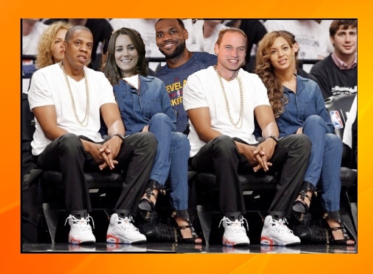 Oh My God, that looks amazing on you!” squealed Beyonce to Kate in the dressing room at Marshall’s. “Damn you probably never even need photoshop or a wind machine to look good.” The two went clothes shopping with their husbands as part of Beyonce and Jay-Z’s spend a day with the royals program, which had started at 9AM. When Kate informed her rather despondently “I don’t actually have any money in my purse, just some pounds with my grandmother-in-laws face on them, “ Bey gave her a playful slap on the behind. “Oh girl, I got this. Hell I’m so rich, my face should be on the money!” The two met up with Will and Jay-Z coming out of Foot Locker, where they had outfitted William for the evening’s basketball game in Brooklyn. After a quick trip to Madame Tussaud’s where Bey insisted they all pose next to their likenesses, the quartet headed to Ray’s Pizza for a slice. A brief photo op with the Naked Cowboy in Times Square was followed by a special 10 minute abridged performance of The Lion King. “Awesome” exclaimed Will, “Sir Elton really outdid himself!” They raced each other into the subway after Jay-Z challenged them to a turnstile jumping contest. Avoiding arrest somehow, they all leapt onto the #1 train, just before the doors closed and were whisked to South Ferry where they took the boat ride to Staten Island, but chose not to disembark. Kate suddenly realized they had missed tea with Hilary Clinton. They all stared at each other for a moment in horror and then simultaneously burst out in laughter. “On to Brooklyn”, shouted Jay! Arriving at the Barclay Center the entourage was escorted to their seats by Lebron James where they all plopped down. Bey sang quietly to Kate giving her a sneak preview of the songs from her latest album and Jay explained basketball rules to Will. They all agreed to hook up again tomorrow.